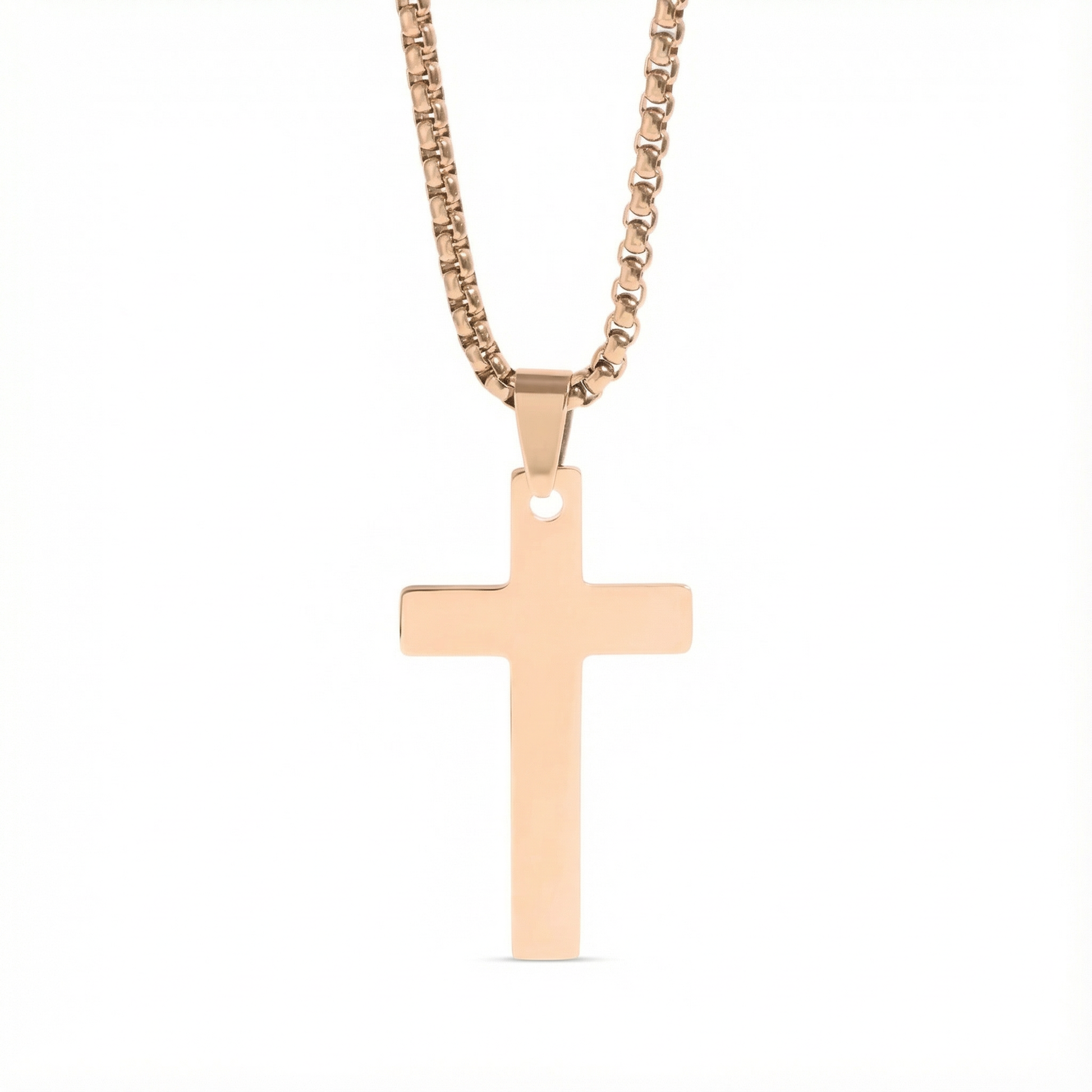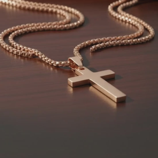 18K Gold Plated Christian Cross Necklace for Men & Women – 1 Inch Stainless Steel Pendant, Rounded Box Chain